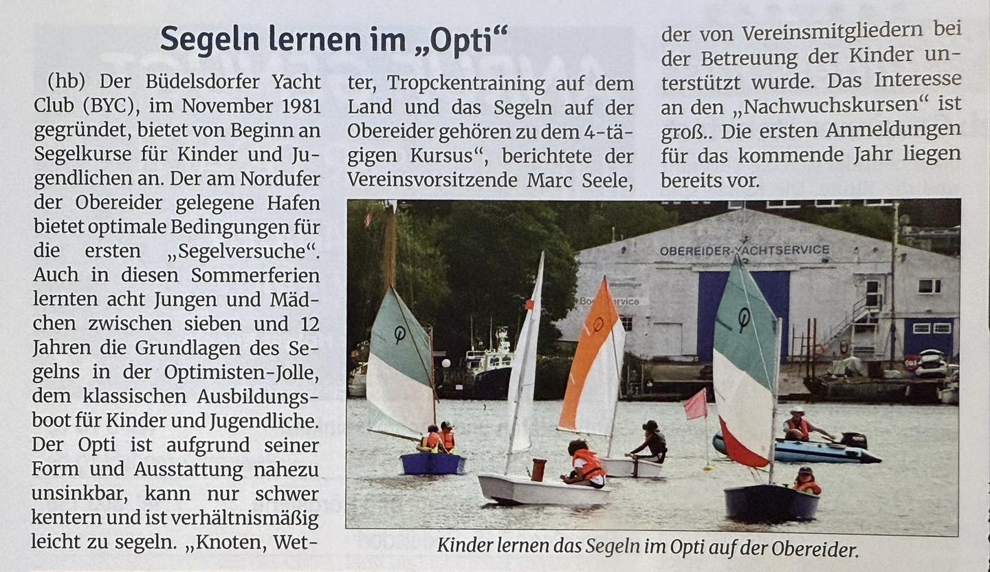 Auch in diesem Jahr hat die Büdelsdorfer Rundschau über unseren Opti-Schnupperkurs berichtet. Wir freuen uns sehr über den tollen Text und das schöne Bild.